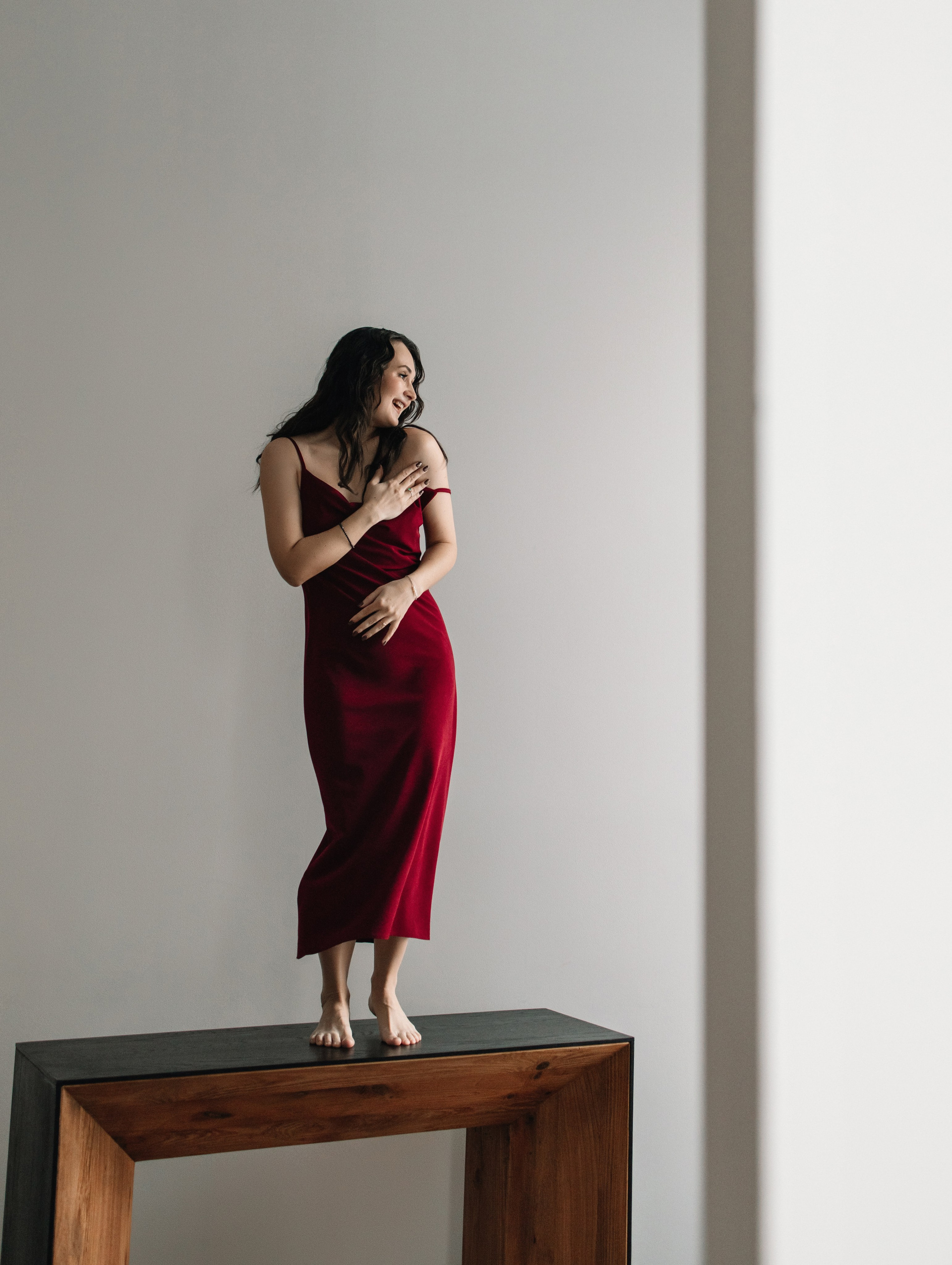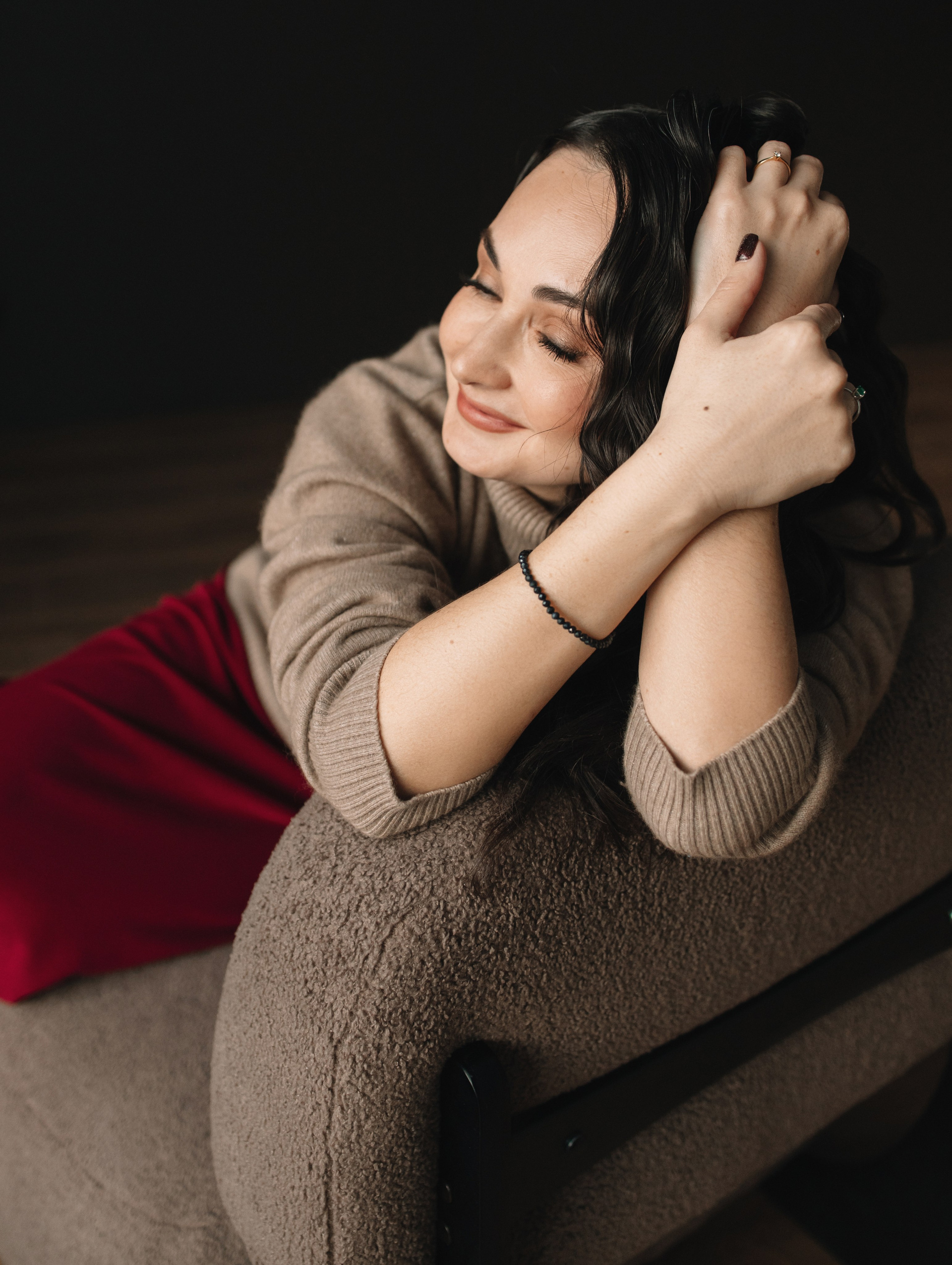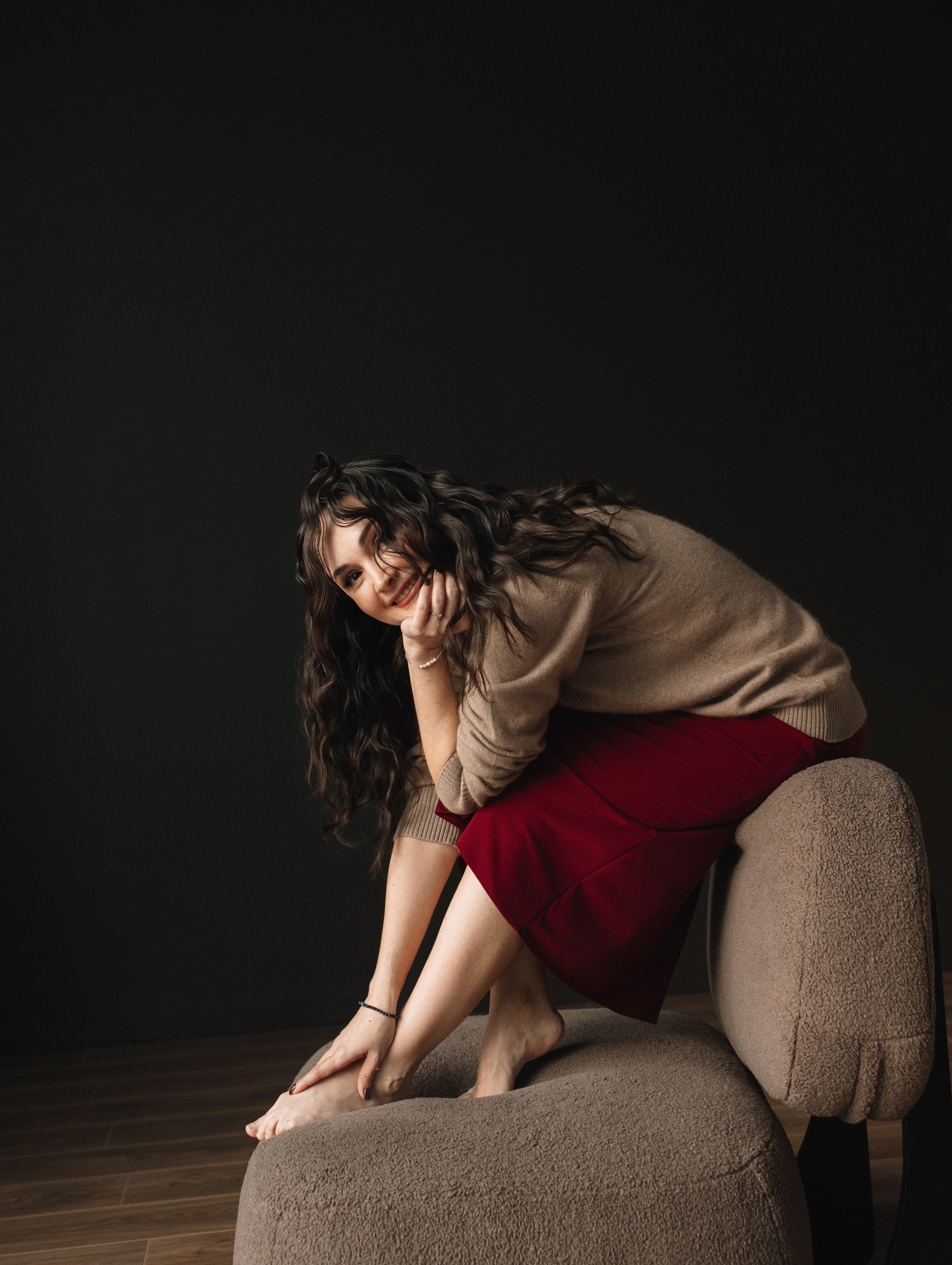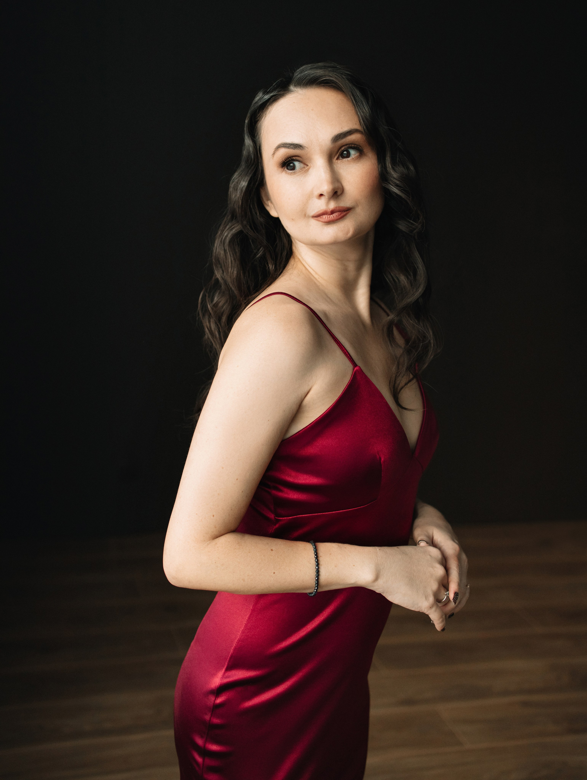 Это была индивидуальная часовая фотосессия в студии, образы подобрали из одежды самой Светланы и лишь чёрное платье из моего базового гардероба для съёмок. Справа видео, которое я отправила в подарок.